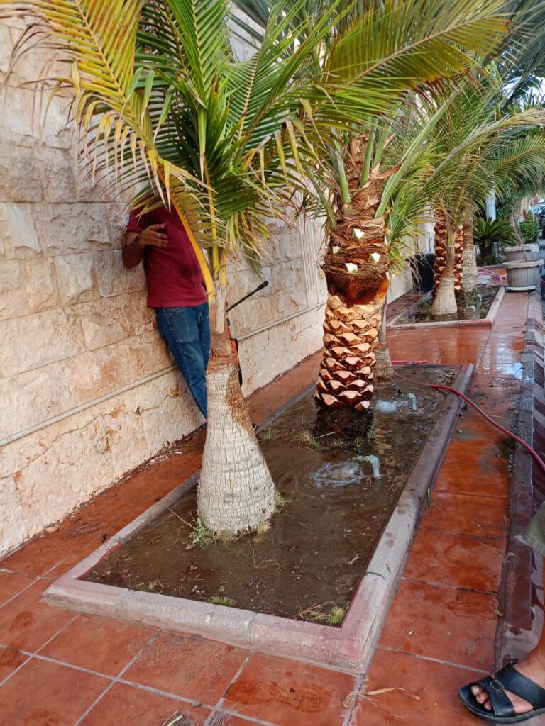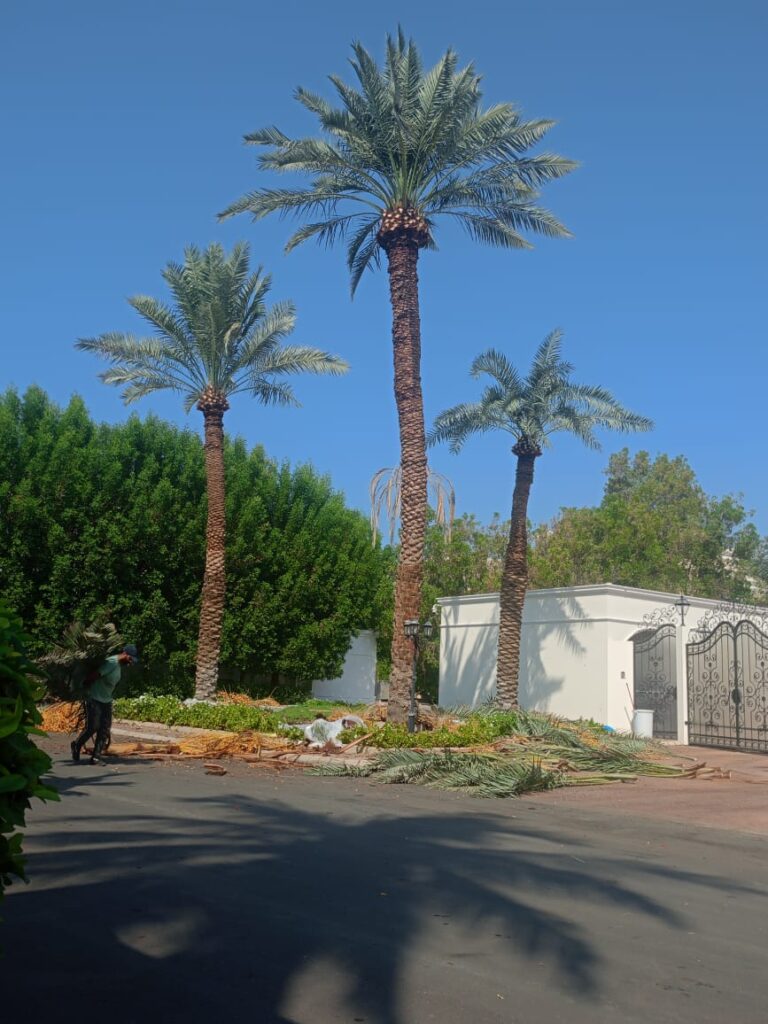 وتتطلب زراعة النخيل عناية مستمرة تشمل عمليات التقليم، وإزالة السعف الجاف، وتنظيف جذع النخلة، إضافة إلى مكافحة الآفات والأمراض التي قد تصيبها، مثل سوسة النخيل الحمراء. وتُعد الوقاية والمتابعة الدورية من أهم العوامل للحفاظ على صحة الأشجار وضمان استمرارية الإنتاج. كما تلعب الخبرة الزراعية دورًا مهمًا في تحديد التوقيت المناسب لعمليات الخدمة المختلفة.
