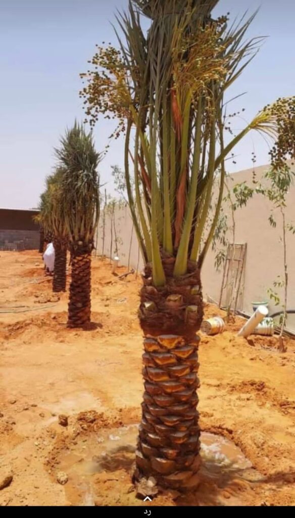 تبدأ عملية زراعة النخيل باختيار الفسائل أو الشتلات السليمة والخالية من الأمراض، ويفضل أن تكون مأخوذة من أشجار منتجة ذات جودة عالية. ويتم غرس الفسائل في حفر مناسبة العمق والمساحة، مع مراعاة ترك مسافات كافية بين الأشجار لضمان التهوية الجيدة وسهولة العناية. كما يتم الاهتمام بتسميد النخيل باستخدام الأسمدة العضوية والكيميائية وفق برنامج مدروس لدعم النمو وزيادة الإنتاج.