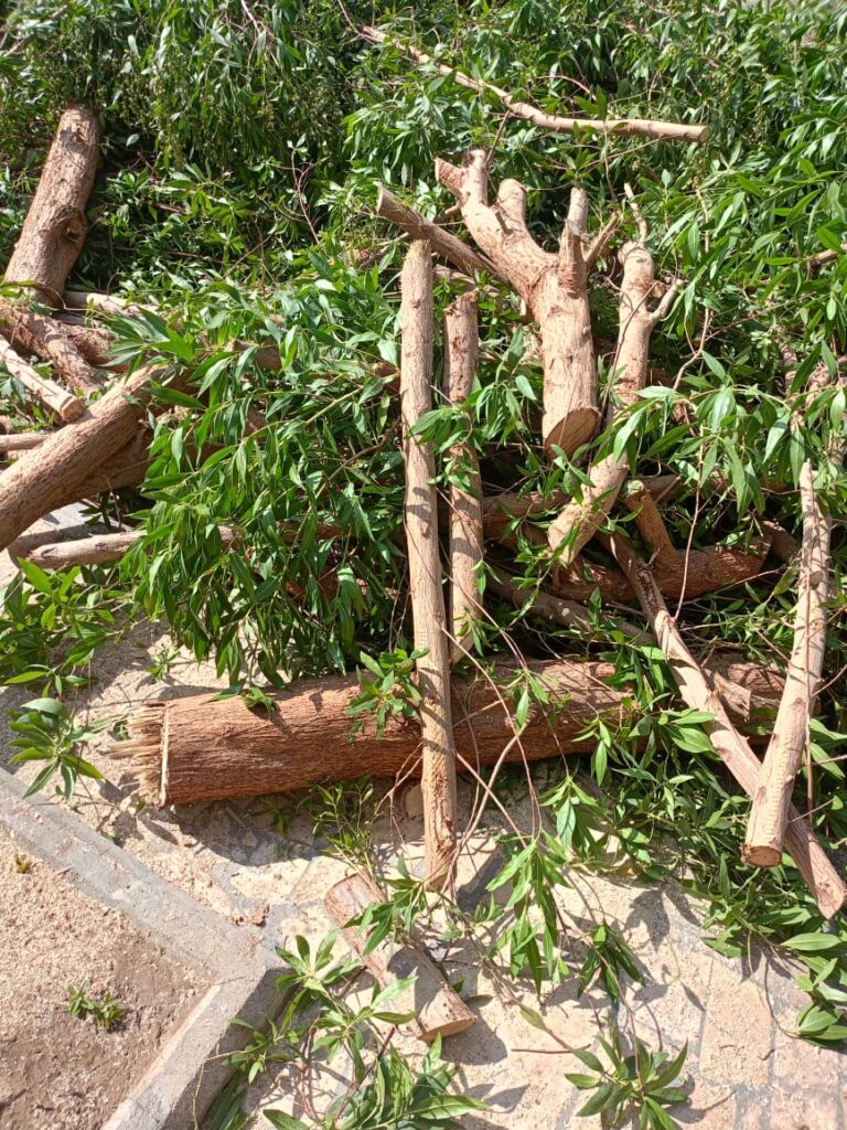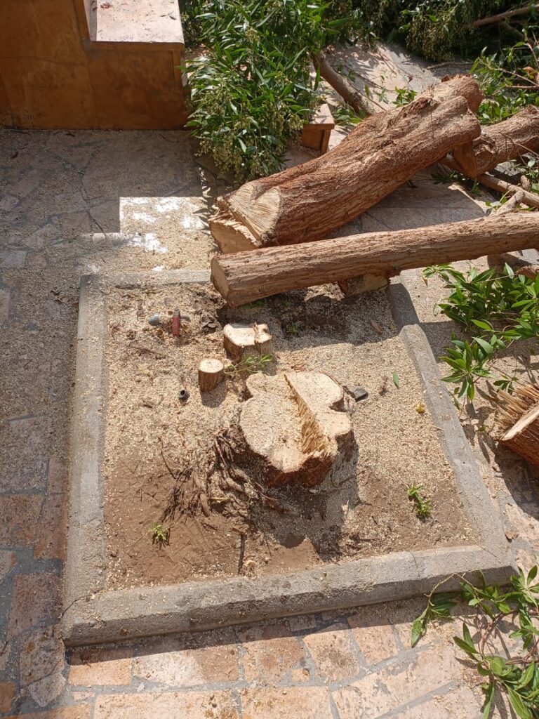 أما قص الأشجار، فيُعد من الأعمال الضرورية للحفاظ على صحتها وشكلها الجمالي. ويساعد التقليم المنتظم على إزالة الأغصان الجافة أو المريضة، وتحفيز نمو فروع جديدة، وتحسين تهوية الشجرة ووصول الضوء إلى أجزائها الداخلية. كما يُستخدم القص لتشكيل الأشجار بما يتناسب مع التصميم العام للمكان، خاصة في الحدائق والمناطق الحضرية.